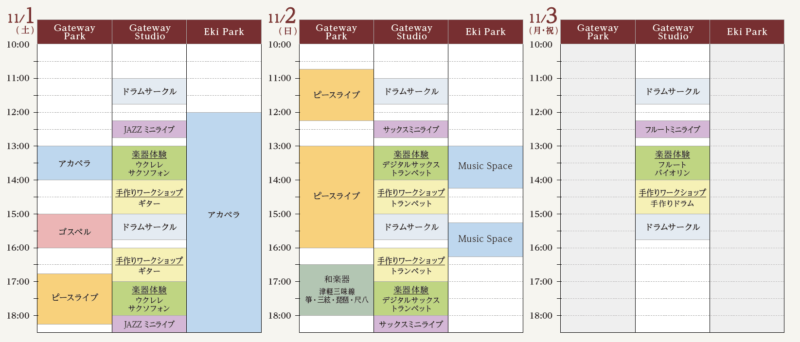 3日間様々なジャンルの演奏が行われます。